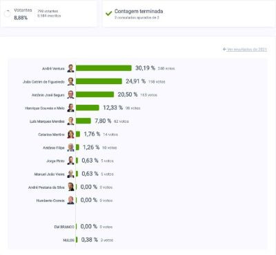 Este é um detalhe, individual, que pode ilustrar os bons resultados de Ventura em alguns locais urbanos, como as zonas mais favorecidas da “Linha” - que é a que aludo aqui. Ao mesmo tempo, e porque estou em Palmela, mostro os resultados de um universo que não é alentejano rural e que mostra como num eleitorado que habitualmente vota basto à esquerda, Ventura surge com bons resultados. Significará o que deveria ser evidente: que as pessoas votam consoante o tipo de eleições e consoante as mensagens que querem enviar ao poder - flutuando muito mais do que os ideologizados jornalistas, empenhados intelectuais públicos ou mesmo os meros drs. locutores nas redes sociais (como este jpt bloguista).